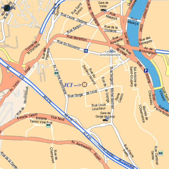 Accés Sud En venant par l'autoroute de Marseille dans le sens Marseille-Paris, prenez la première à droite au sortir du tunnel de Fourvière. Arrivé au rond point, prendre à 180 degrés, la route qui serpente la colline pour arriver au feu au croisement de Gorge de Loup avec la rue Sidoine Appolinaire. Au feu, tournez à droite, pour être dans la rue gorge de Loup. Passez sous l'autopont SNCF. Puis au feu suivant, prendre à gauche, pour vous trouver dans la rue Joannés Masset. Engagé dans la rue Joannés Masset, prendre immédiatement à votre gauche pour entrer dans le 24 qui correspond à la zone d'activités. Nous sommes situés dans le Bâtiment 3, à côté des établissements voisin. Accés Nord Quand vous êtes sur l'autoroute A7 en provenance de paris, prenez la sortie Vaise. Au rond point, prenez la rue marietton en direction de LYON, puis à après le garage Suzuki, la rue du bourbonnais. Au feu, la première à droite, la rue Sidoine Appollinaire; Passez devant la piscine de vaise, puis au feu prendre à gauche, pour être dans la rue gorge de Loup. Passez sous l'autopont SNCF. Puis au feu suivant, prendre à gauche, pour vous trouver dans la rue Joannés Masset. Engagé dans la rue Joannés Masset, prendre immédiatement à votre gauche pour entrer dans le 24 qui correspond à la zone d'activités. Nous sommes situés dans le Bâtiment 3, à côté des établissements voisin. |