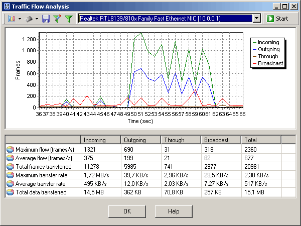 You can easily analyze the network data flow and most active hosts on the network.